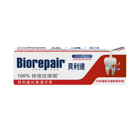 * 臨床測試顯示,Biorepair 在僅僅30秒內即可減輕敏感帶來的疼痛